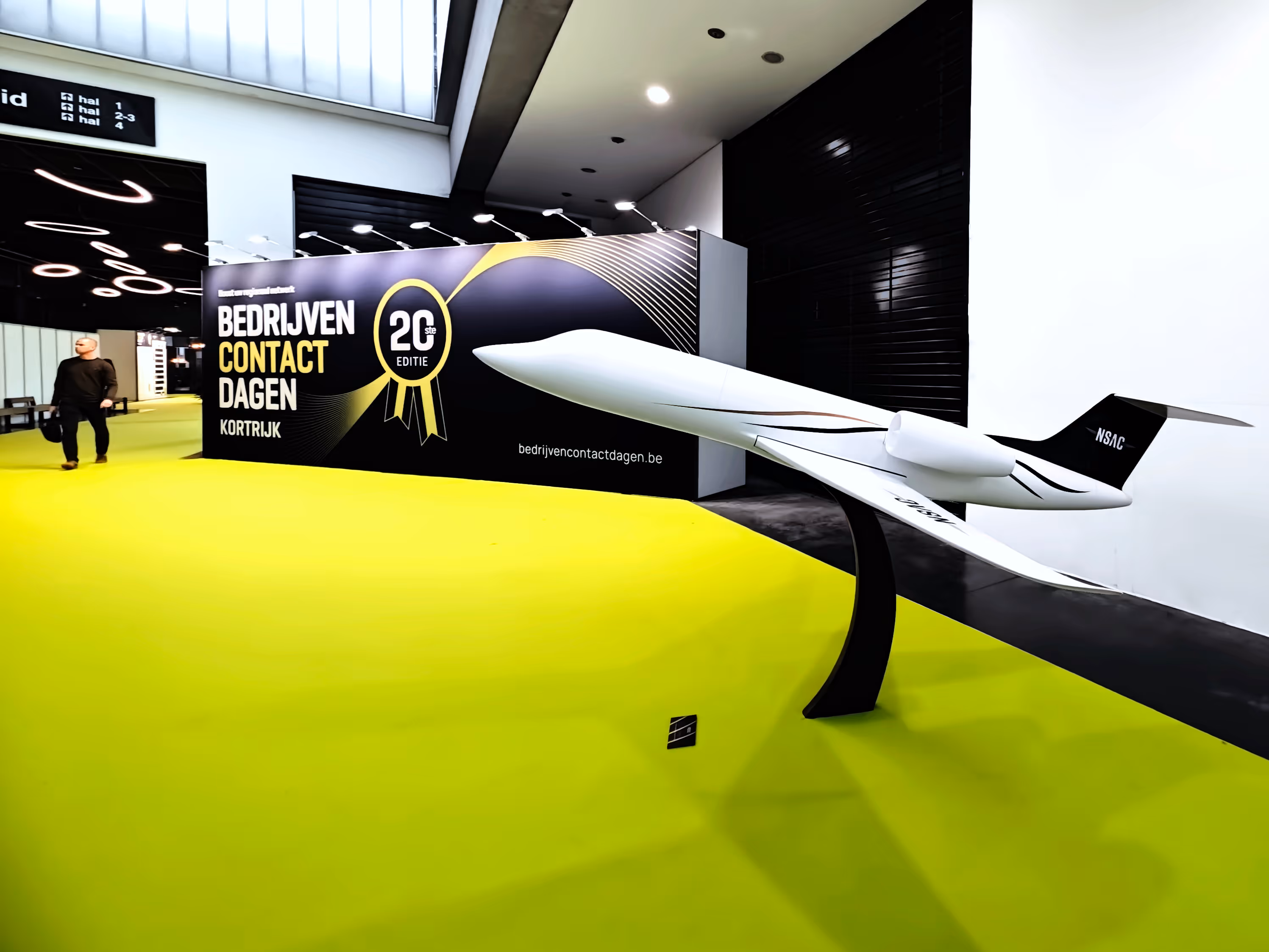 In opdracht van NSAC hebben we een schaalmodel van een vliegtuig 3D geprint dat gebruikt werd aan de inkom van de 20ste editie van de "bedrijven contact dagen" beurs in Kortrijk.